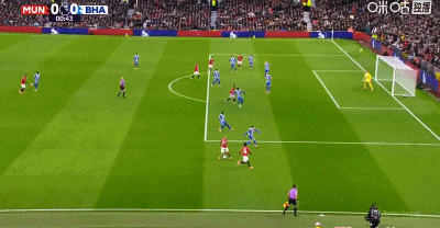 第34分钟,卡塞米罗弧顶处抽射破门,曼联2-0布莱顿